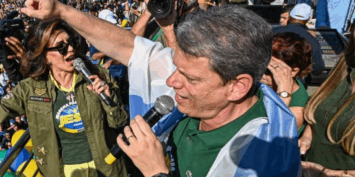 A 33ª edição da Marcha para Jesus em São Paulo, realizada nesta quinta-feira (19), foi marcada por um gesto simbólico e politicamente carregado do governador Tarcísio de Freitas (Republicanos). Enrolado em uma bandeira de Israel, o chefe do Executivo paulista subiu no trio elétrico e puxou o louvor “1.000 Graus”, diante de uma multidão de fiéis que também agitava bandeiras de Israel e do Brasil. O ato acontece em meio a um novo capítulo de tensão no Oriente Médio, com confrontos recentes entre Israel e Irã, e, por aqui, num cenário pré-eleitoral em que o campo conservador já se movimenta.