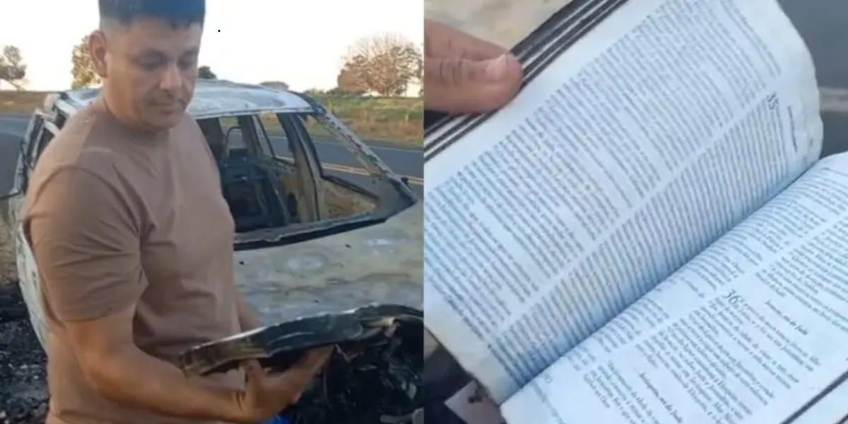 Mas o que transformou o caso em notícia nacional foi o relato do filho da condutora. Em um vídeo que viralizou nas redes sociais, ele mostrou os destroços do carro e revelou que, entre os escombros, apenas uma Bíblia resistiu às chamas. O livro sagrado estava aberto no livro de Rute, com a página intacta trazendo a mensagem: “Por fim, Rute entregou o coração a Deus. O maior testemunho que podemos ter é a presença da graça. Seja gracioso e veja Deus tocar em sua vida”.
