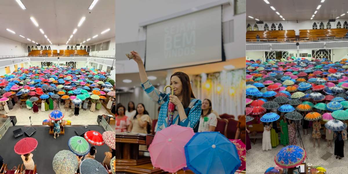 O vídeo de um culto realizado pela Assembleia de Deus de Coronel Fabriciano, em Minas Gerais, viralizou nas redes sociais ao mostrar dezenas de mulheres entrando no templo com sombrinhas abertas, em um ato simbólico conduzido pelo pastor local. O gesto, segundo ele, representava a “cobertura e proteção de Deus sobre as famílias”, uma espécie de guarda-chuva espiritual estendido sobre cada mulher presente.