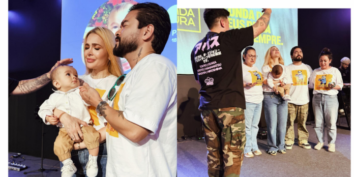 Yudi Tamashiro e Mila Braga consagram o filho à fé em culto emocionante e revelam como a paternidade fortalece sua caminhada cristã